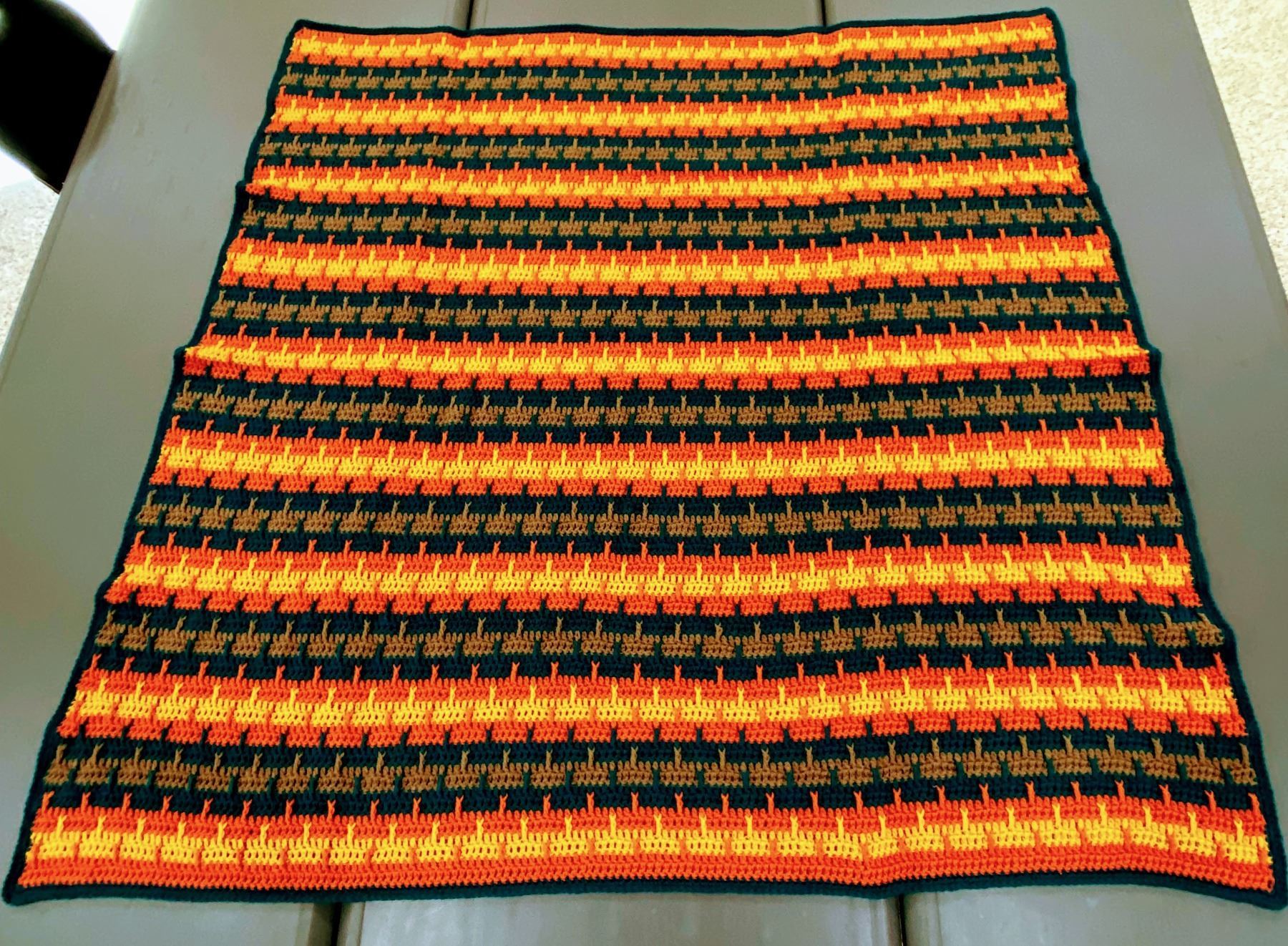 Beautiful Crocheted Afghan Featuring Fall Colors by Bette Madler