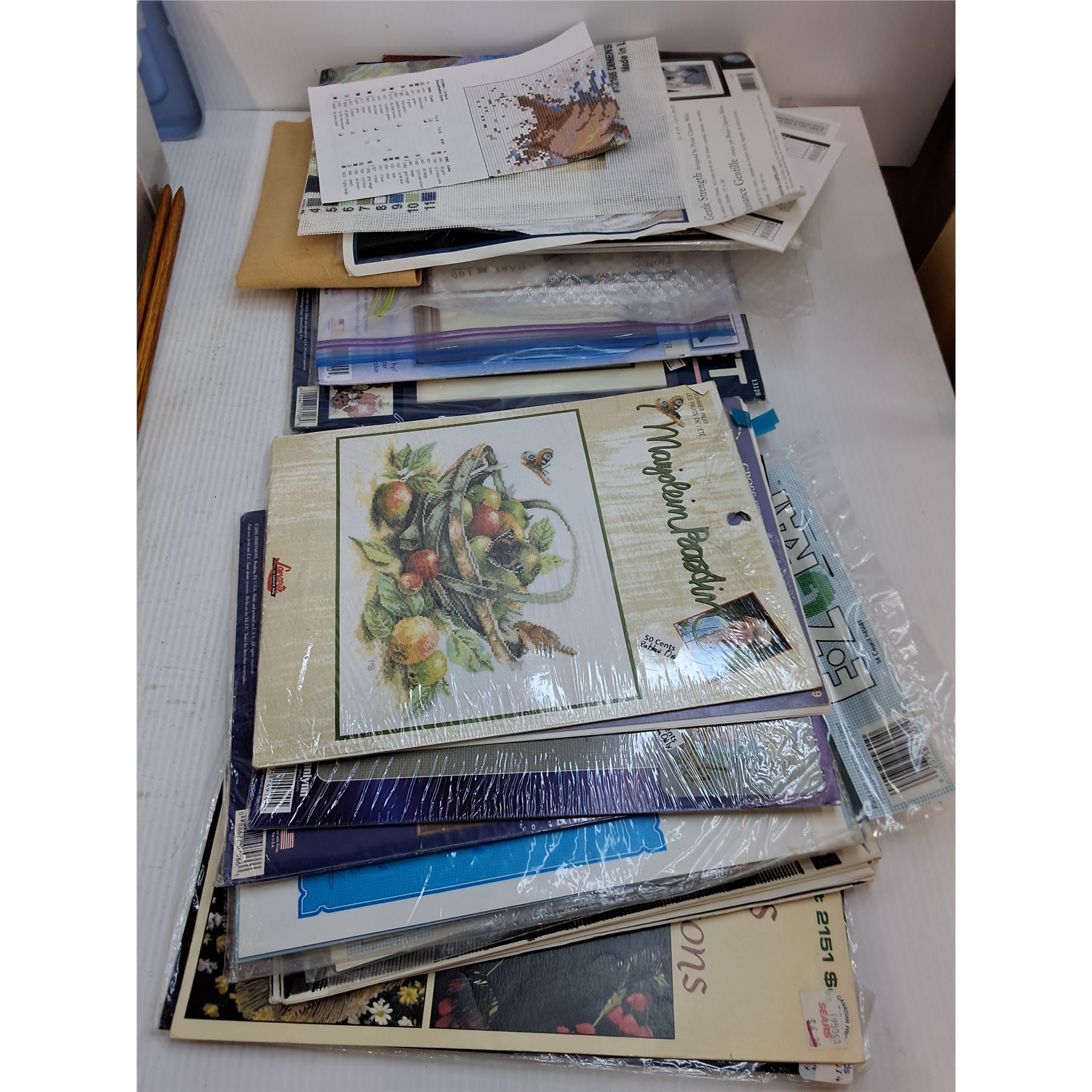 Crocheter's Lot (Books, Projects, Needles, Materials, Storage Bin)
