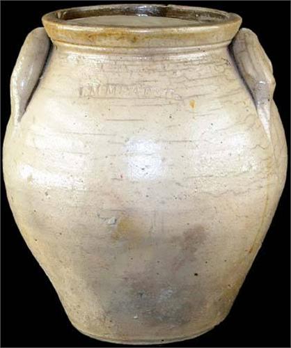 Crock, "L.M. Mead & Co." Mismatched Lid, 9.5" tall x 8" wide