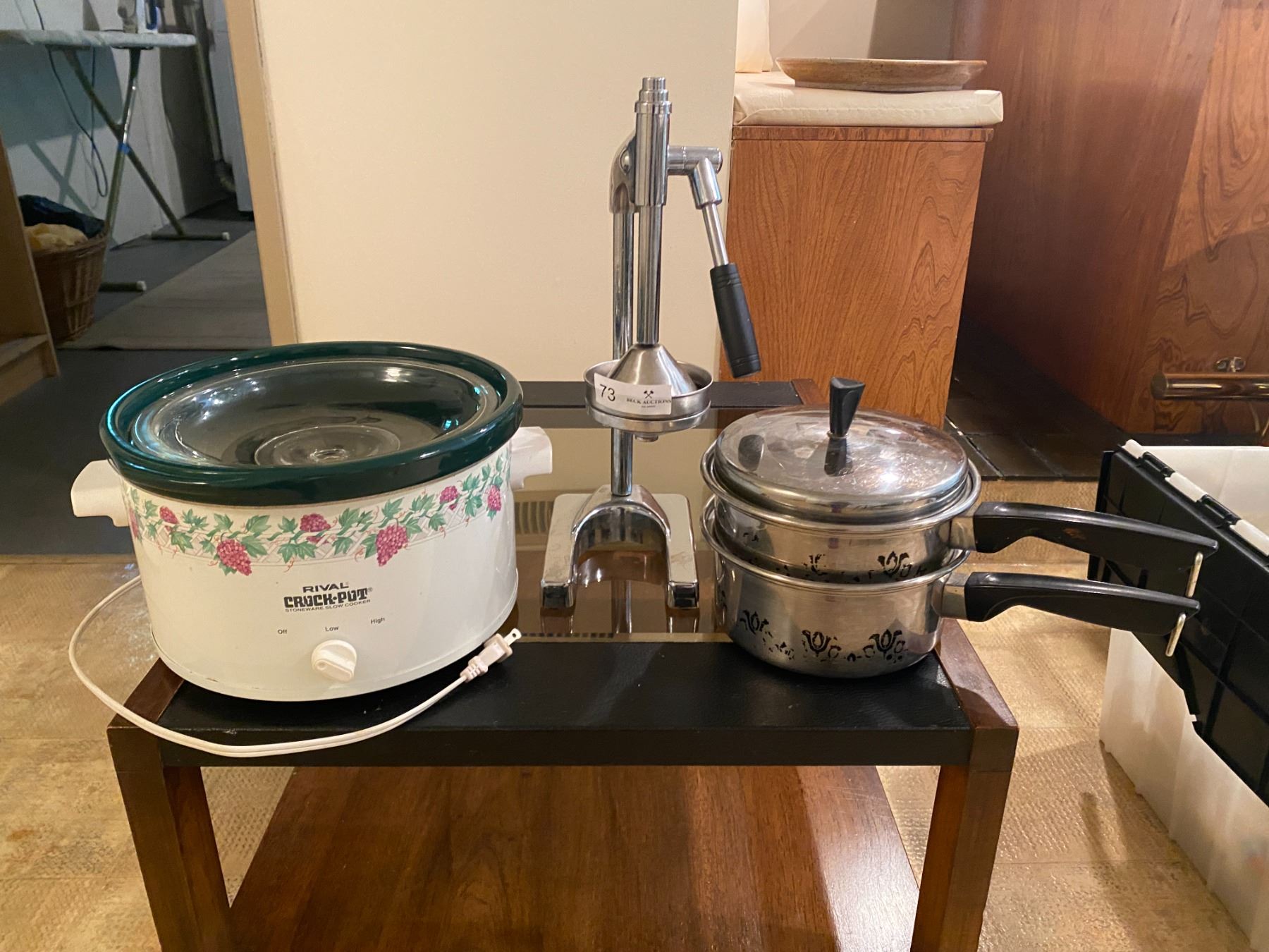 Crock Pot & 2 Vintage Pots with Lids & Juicer