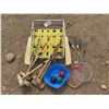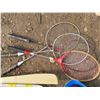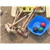 Crocket sticks and balls + 4 Badminton rackets and 1 lawn chair