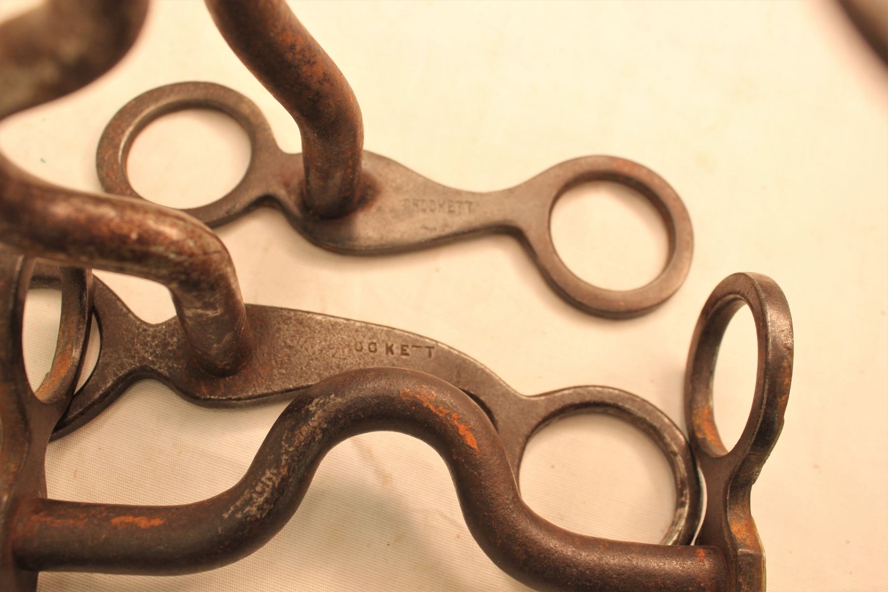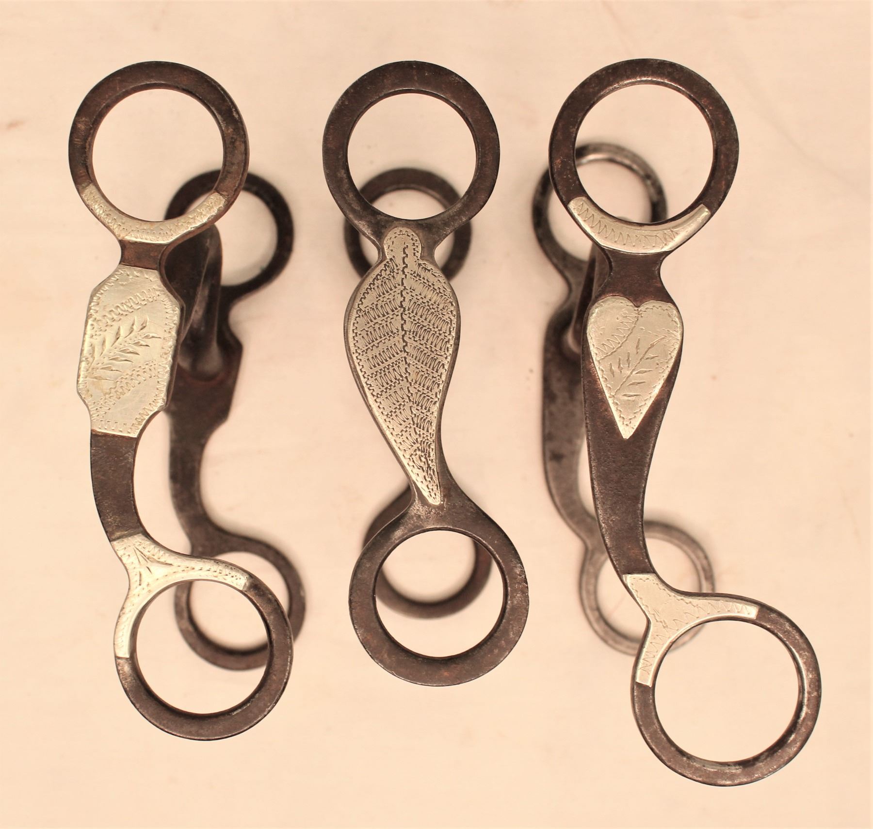 Wonderful grouping of three silver mounted grazing bits that includes a rare large heart, and a large leaf.