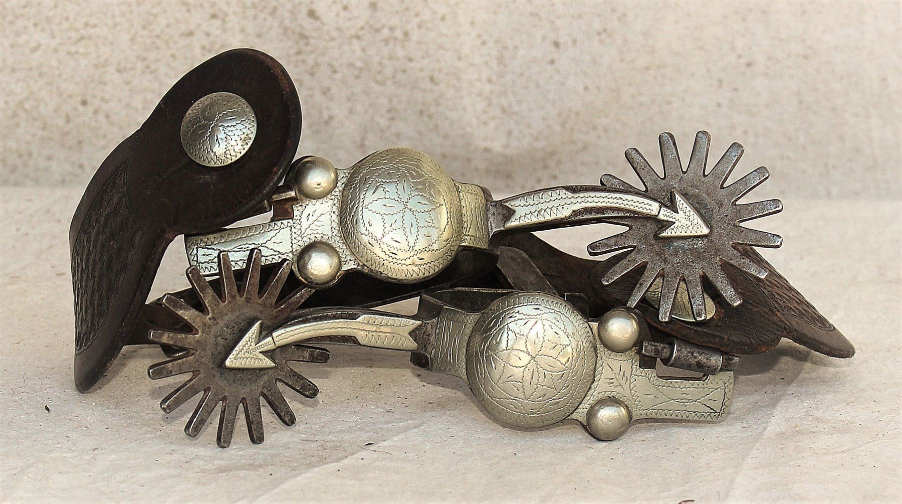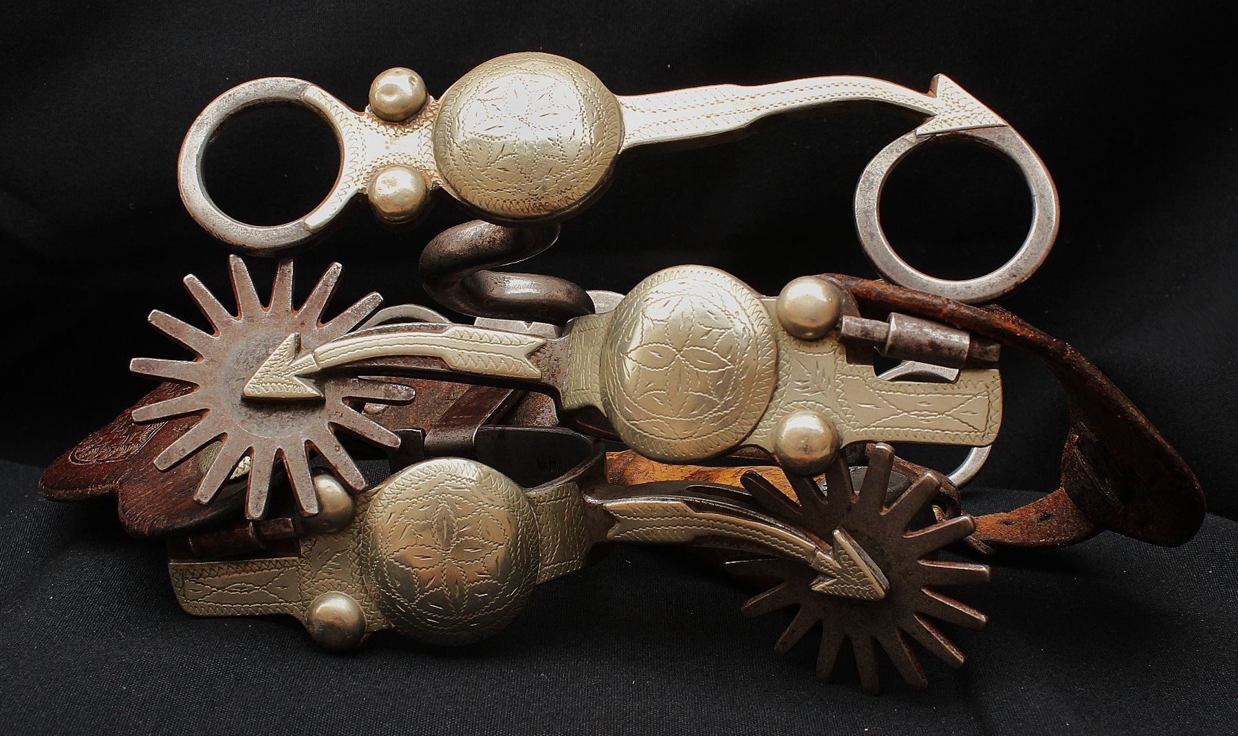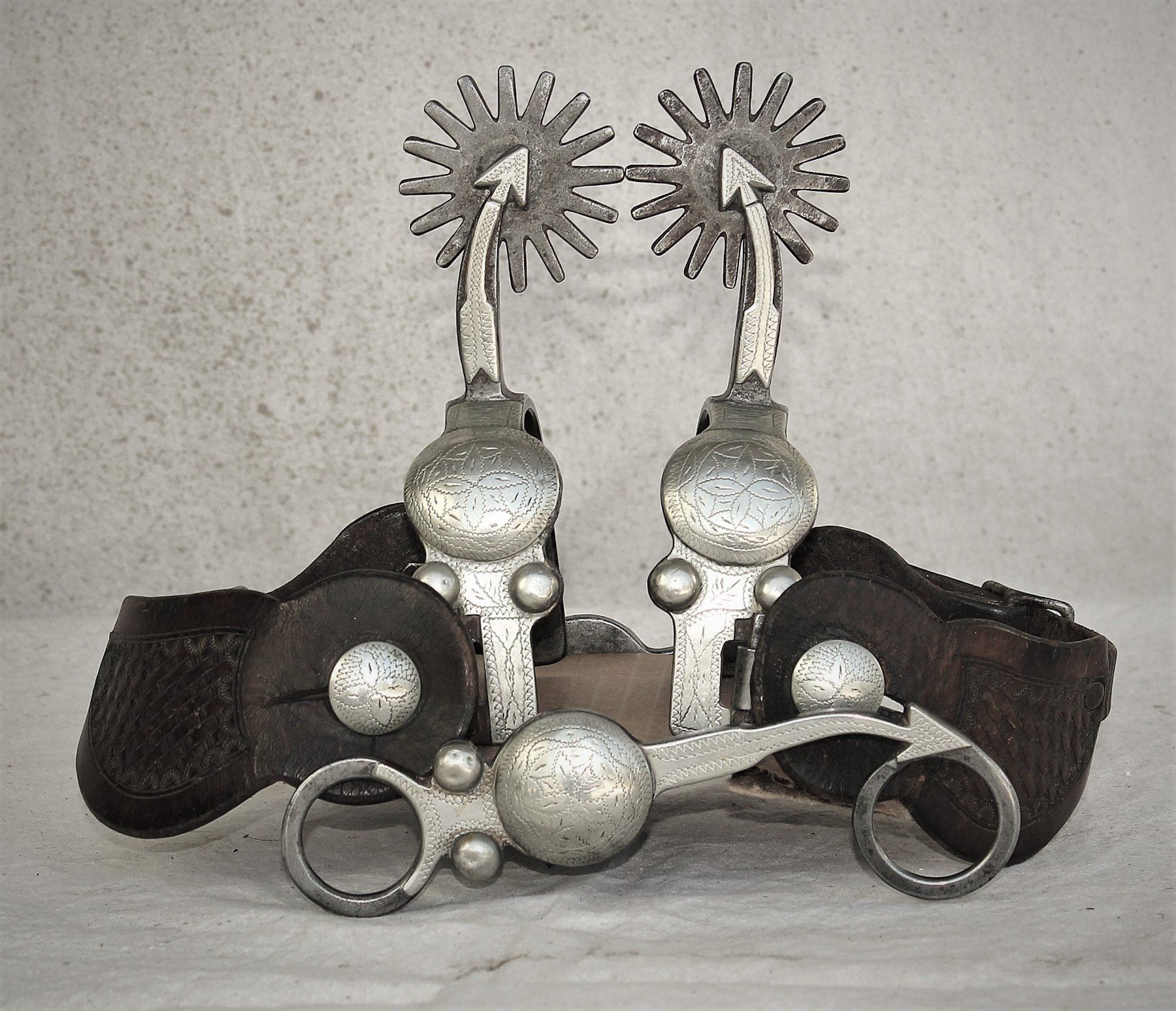 Spectacular, hard to find, inside marked Showboys that are in wonderful condition and are accompanied by their matching arrow shanked bit. With crisp engraving, metal and clear maker's mark.