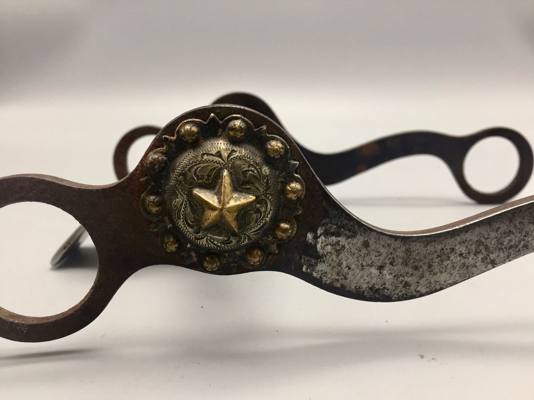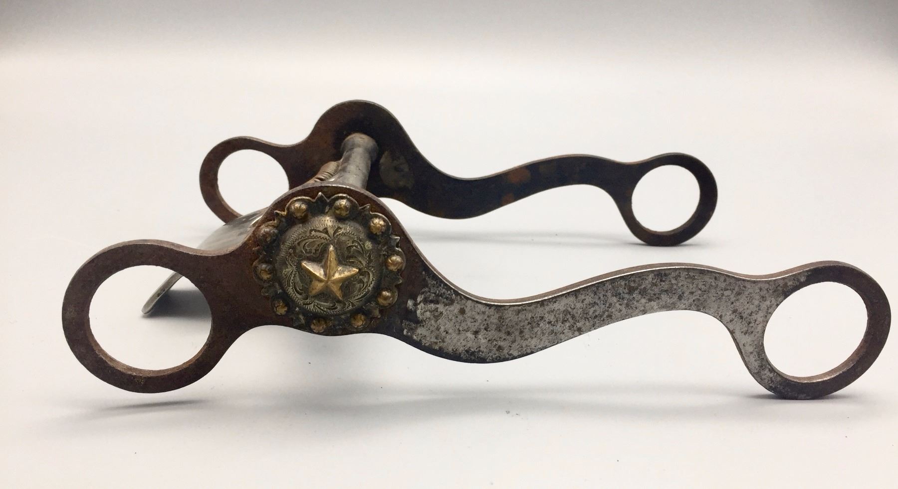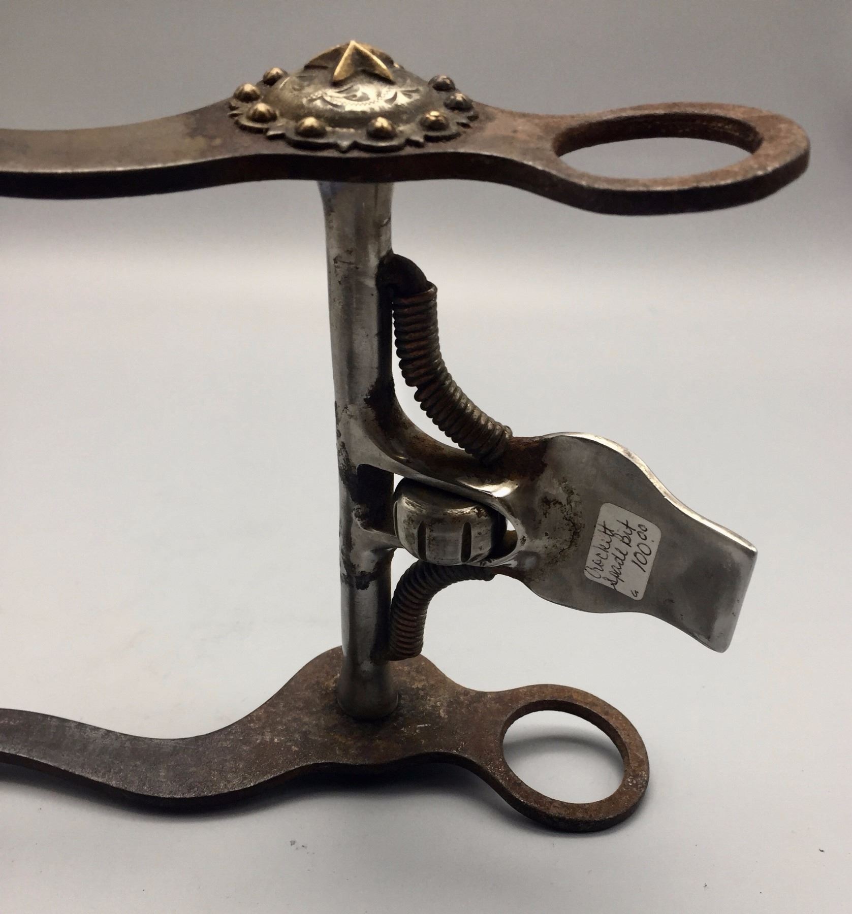 Maker: Marked, Crockett. Approx. Age: Circa mid-century. Size: 5" mouthpiece and is 8 ½" long. Additional Info: Crockett did not produce very many spade bits. Condition: Pretty good for its age, normal wear expected and conchos on the side are not original. Please look closely at the pictures - they are an important part of our description. Shipping: There will be a $5 handling / packaging fee for shipping this lot. The actual cost of postage will be added on top of that.