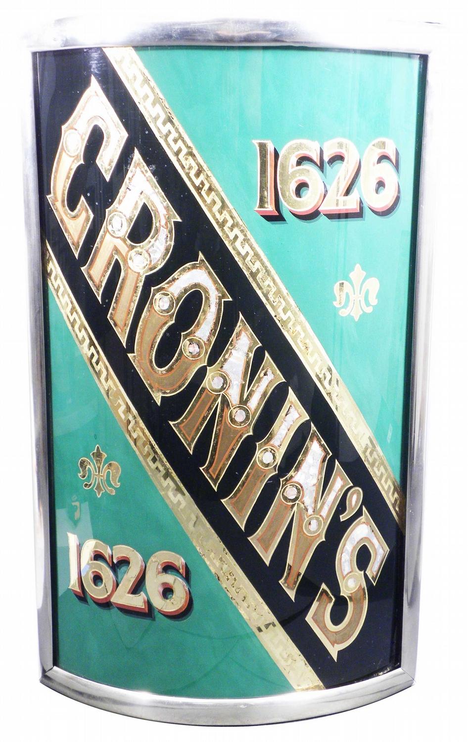 Cronin's Hotel/Saloon Reverse Glass Corner Address Sign. San Francisco, California. Mother of Pearl letters. Excellent condition. 19 1/2 X 32 inches.