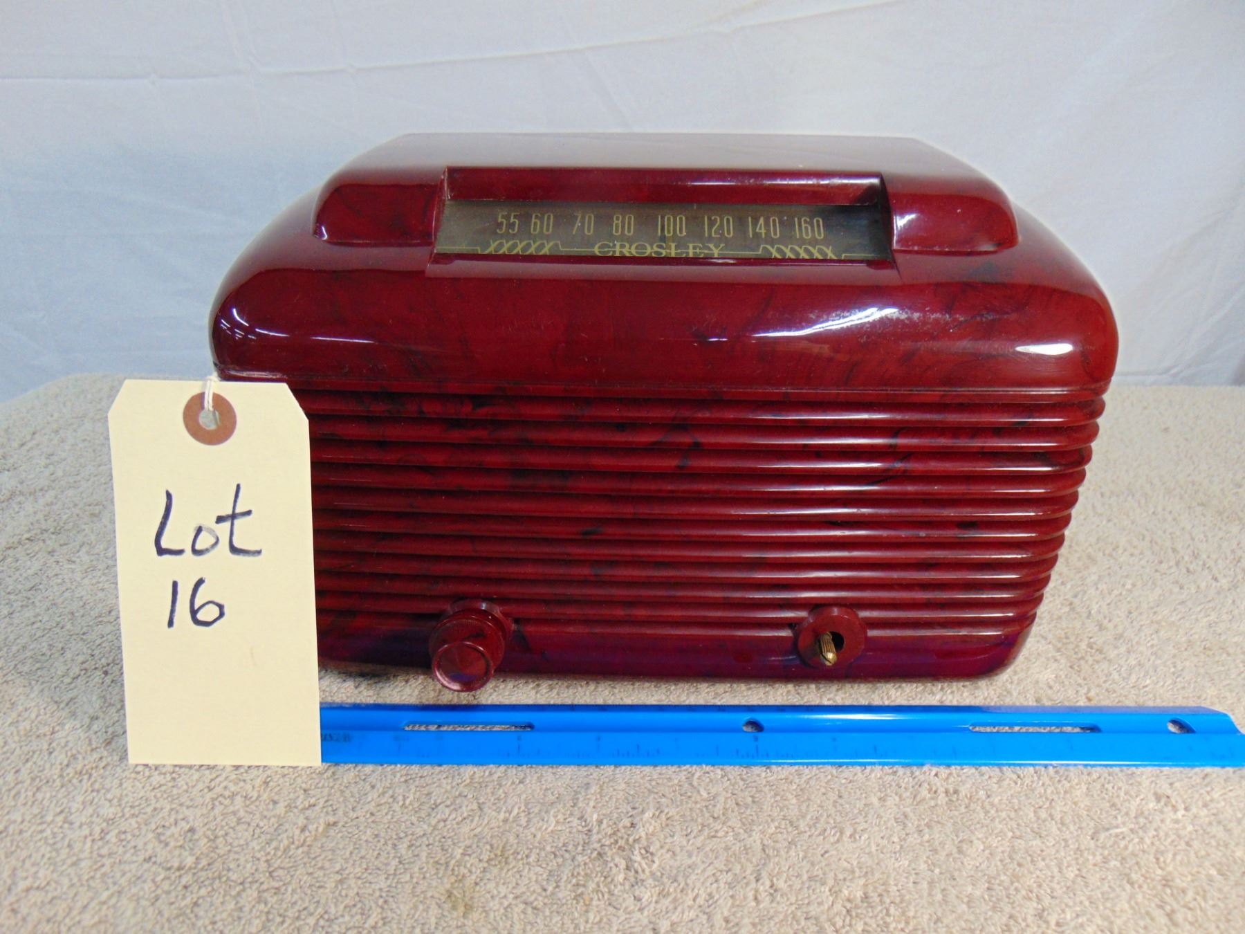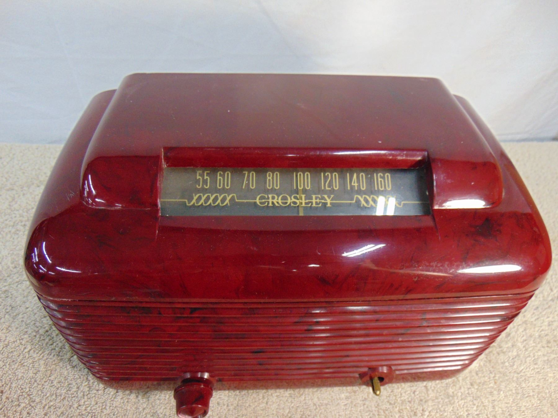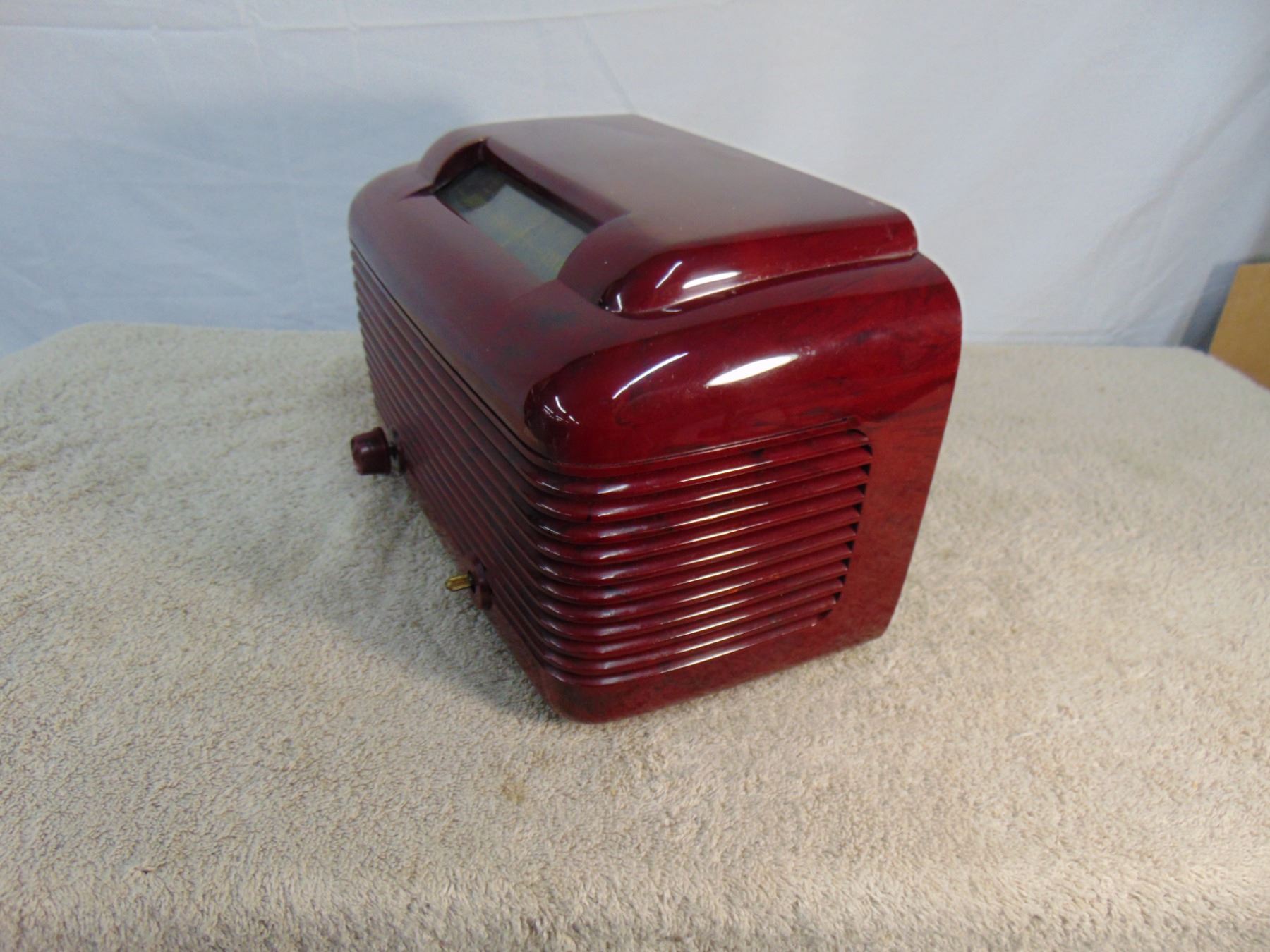 Crosley maroon bakelite table set; model 58TC; very nice condition; missing one knob; works