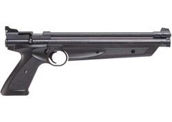An American classic in black. Uses 1-10 pumps, ideal for plinking.Caliber: 0.177Velocity: 600.00Crosman 1377C air pistol, now called P1377 Multi-pump pneumatic Bolt-action Single-shot Textured plastic grip & pump arm Ambidextrous grip with thumbrests on both sides 3-10 pumps Manual safety Fixed front sight, fully adj. rear