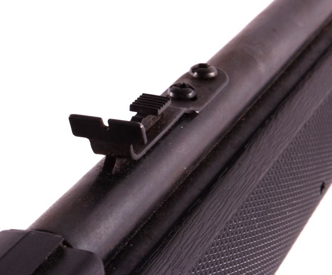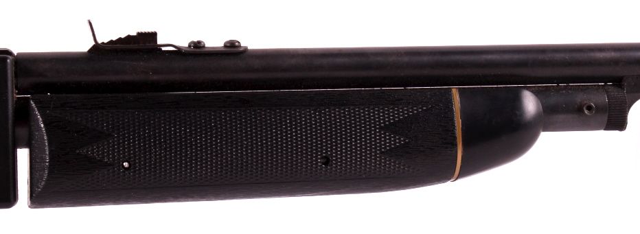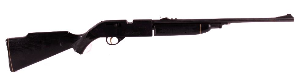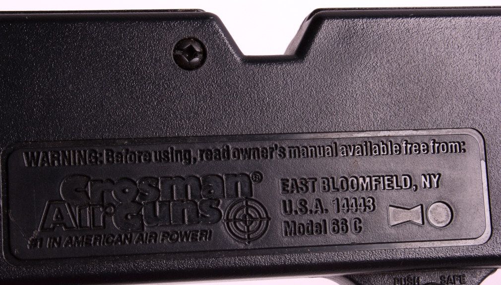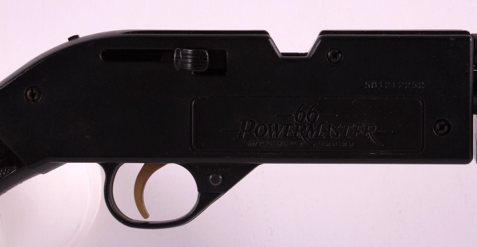 This is a Crosman model 66C air rifle. The rifle will shoot .177 caliber pellets or BB's. This is a single shot rifle. It features a pump action fore stock. The Crosman air rifle is in very good condition. It measures 38.25" long.