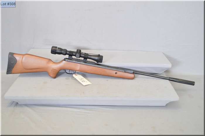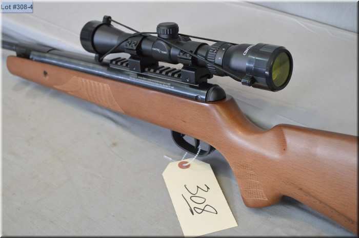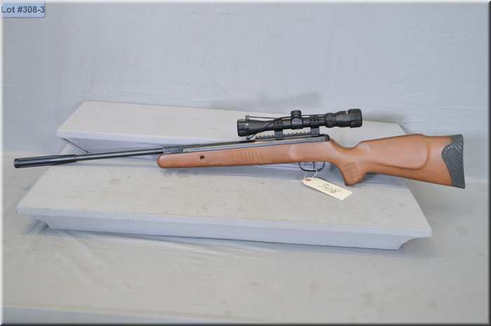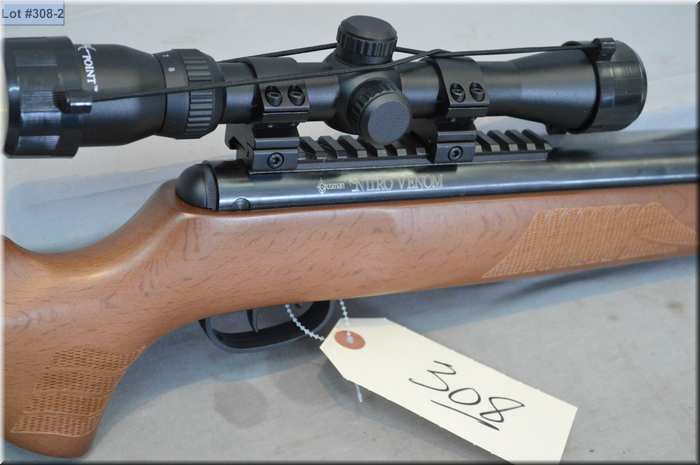 Crosman Nitro Venom .177 Pellet cal spring action Pellet Rifle w/ 18 1/2 " bbl [ blued finish, rail base, fitted w/center point 3 x 9 x 32 scope w/plastic caps, gun appears v-good , checkered pistol grip stock w/rubber recoil pad ] Ser # 713X238521 PAL REQUIRED