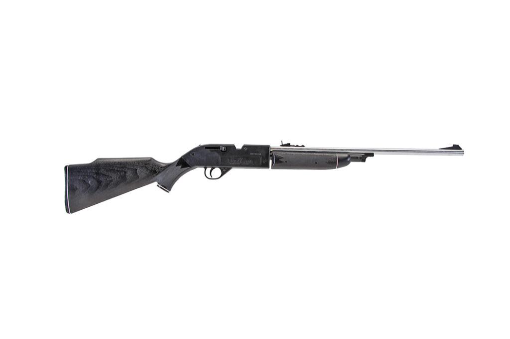 Crosman Powermaster 66 BB Rifle Cal .177, SN:601216289, Nice BB rifle with pump handle in the forearm. Chrome barrel, black receiver and black plastic pistol grip stock, 18 1/2" barrel, adjustable rifle sight.