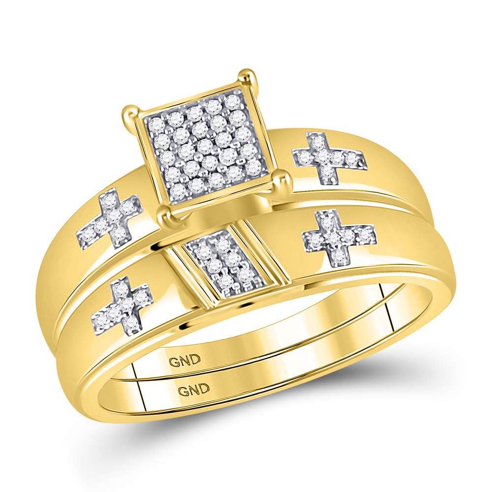 10kt Yellow Gold His Hers Diamond Cross Matching Wedding Set 1/12 Cttw.