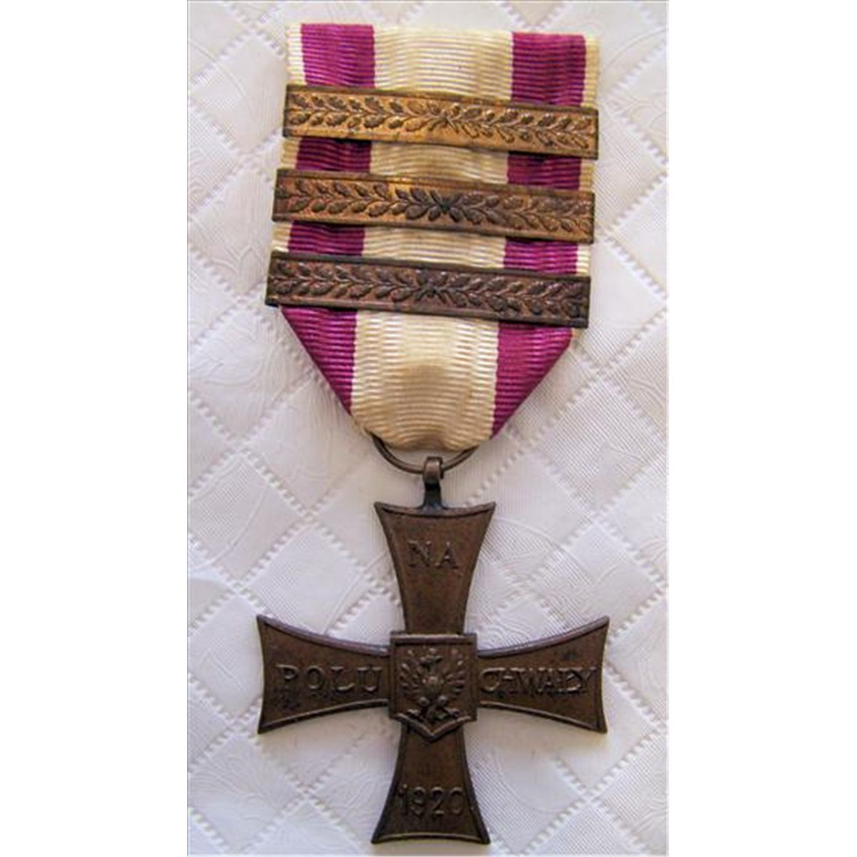 Cross Military Medal with three Bars (NA - POLU - 1920 - Chwaly) back has (WALE CZNYM) White and Purple Ribbon