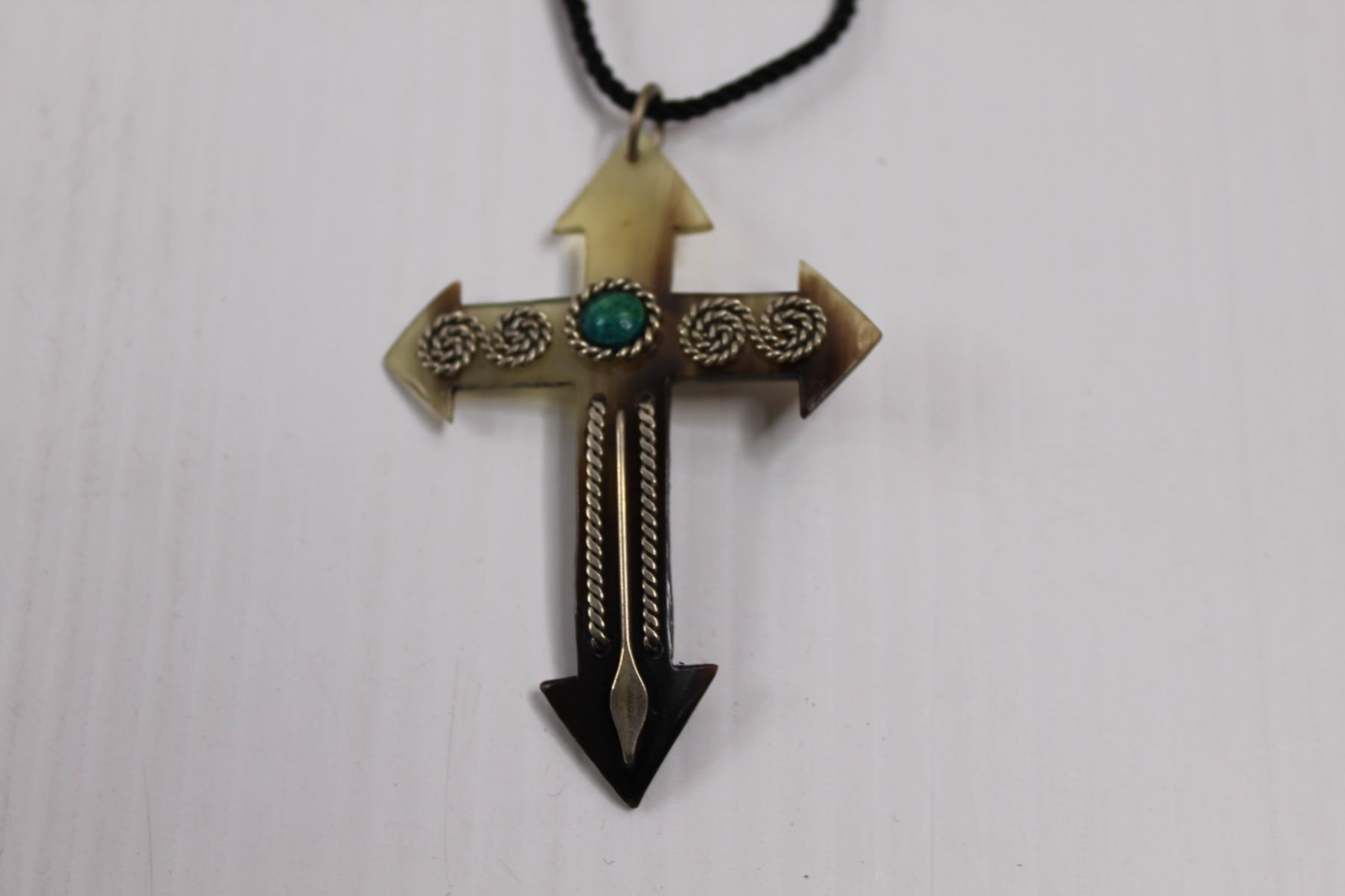 Cross Pendant w/Cord Necklace & Wire Clasp