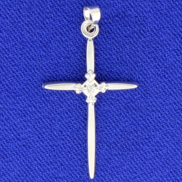 In 14K white gold, this pendant contains one .01ct diamond and is 1 1/2 inches long with bale. 1.2g