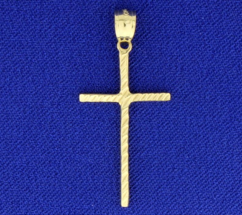 The pendant is 10K yellow gold and is 1 1/2 inches long with bale. .9g