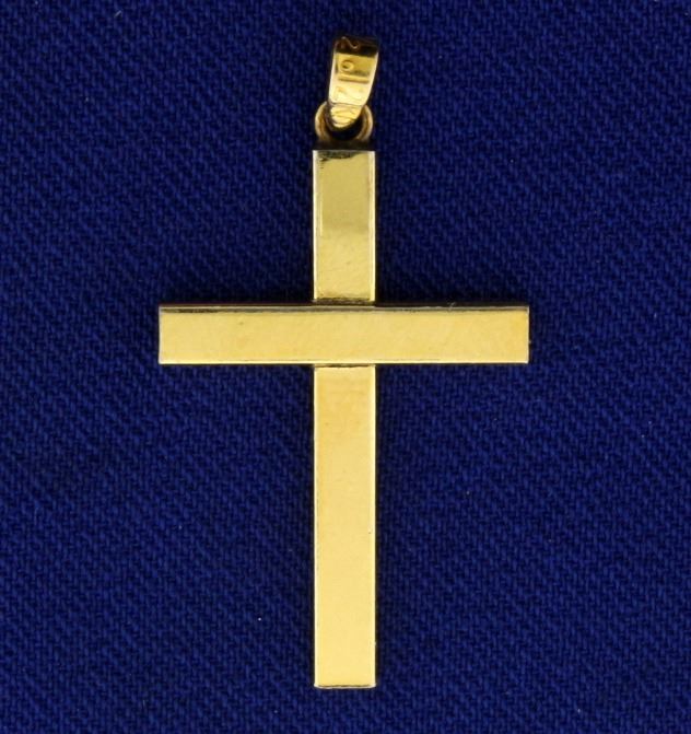 In 14k yellow gold, 1/4" long and 3/4" wide with bale. 1.8g.