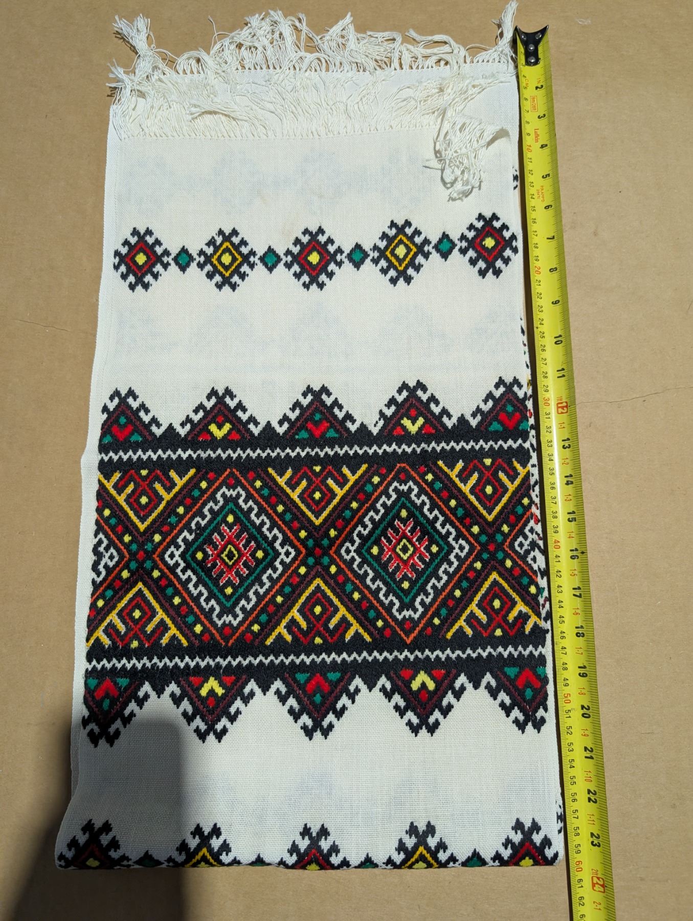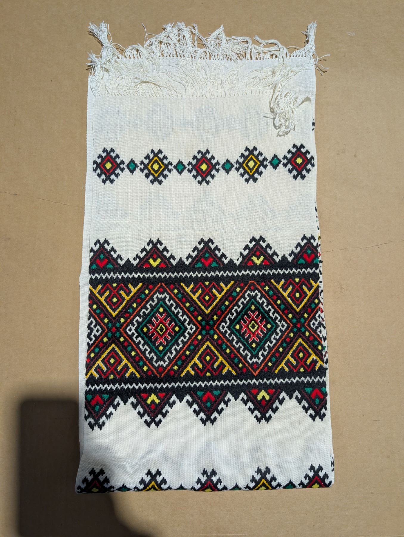 Cross Stitched Embroidered Ukrainian Rusnak (runner for dresser, table, around big holy pictures). From Ukraine. Very good condition. Freshly drycleaned.