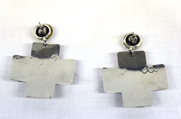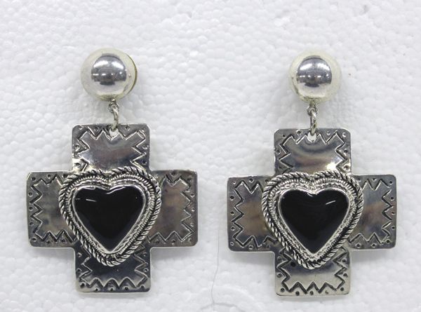 Cross and Onyx Heart Earrings, measure 2.5''L, wt 28.1g