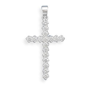 Cross measures 32x17mm and features 2mm round CZs. .925 Sterling Silver