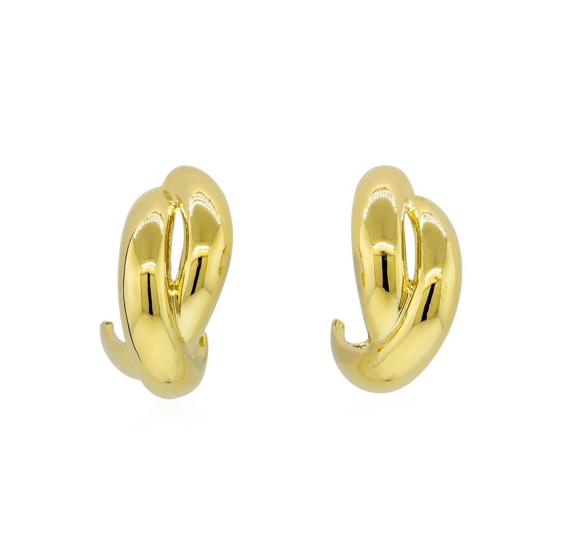 High end designer jewelry. Crossed Hoop Post Earrings - Gold Plated. Gold Plated Stud Set. Gold. 1inch.