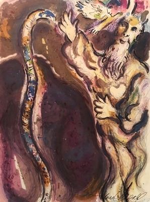 Marc Chagall Lithograph, "Crossing Of the Red Sea", Marc Zakharovich Chagall was a Russian-French artist of Belarusian Jewish origin. An early modernist, he was associated with several major artistic styles and created works in virtually every artistic format, including painting, book illustrations, stained glass, stage sets, ceramic, tapestries and fine art prints.