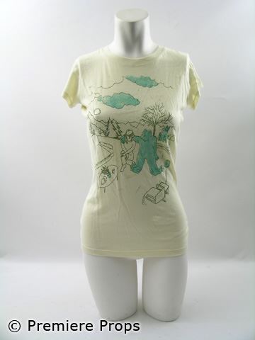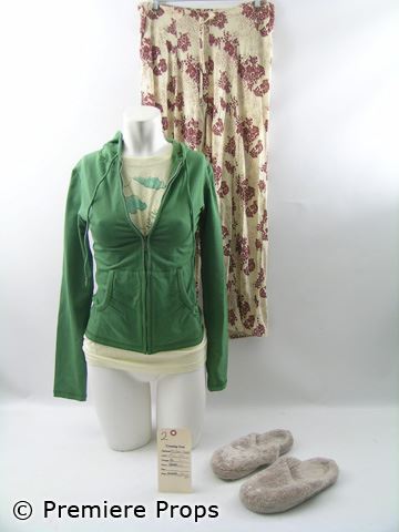 Claire's (Alice Eve) screen worn green cotton "Paige Premium Denim" long sleeve zip up hoodie (size S), cream with burgundy floral print "Kenzie" drawstring waist pants (size M), cream with blue bear/boy print "Heavy Rotation" short sleeve crew neck t-shirt (size M), and tan terry slippers. Includes wardrobe tag!