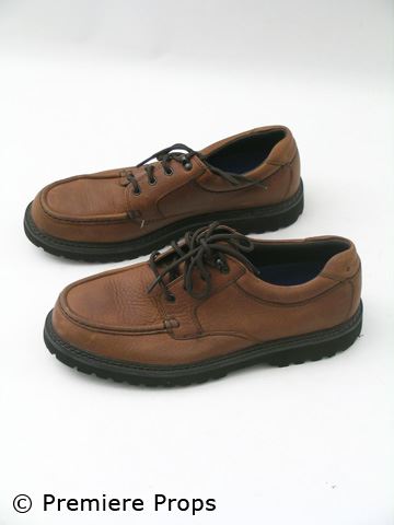 Cole's (Ray Liotta) forest green wool "Pierre Cardin" l/s 3 button blazer (size 42R), taupe poly/rayon "Adolfo" front pleat pants (size 36), brown leather w/ silver buckle "Geoffrey Beene" belt (size 38), white cotton w/ gold/grey/navy stripes "Nicole Miller" l/s button up shirt (size 16-34/35), black silk w/ brown/silver cross diagonal striping "Vazzoni" neck tie, reddish brown leather "Rockport" lace ups (size 10) (includes wardrobe tag / screen worn)