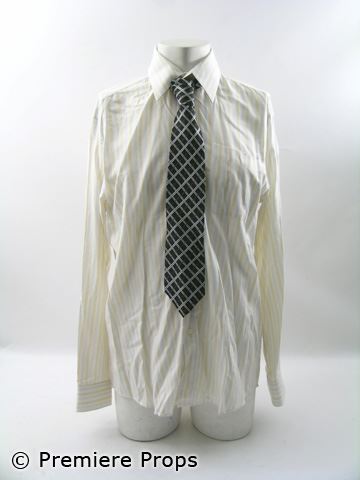 Cole's (Ray Liotta) forest green wool "Pierre Cardin" l/s 3 button blazer (size 42R), taupe poly/rayon "Adolfo" front pleat pants (size 36), brown leather w/ silver buckle "Geoffrey Beene" belt (size 38), white cotton w/ gold/grey/navy stripes "Nicole Miller" l/s button up shirt (size 16-34/35), black silk w/ brown/silver cross diagonal striping "Vazzoni" neck tie, reddish brown leather "Rockport" lace ups (size 10) (includes wardrobe tag / screen worn)
