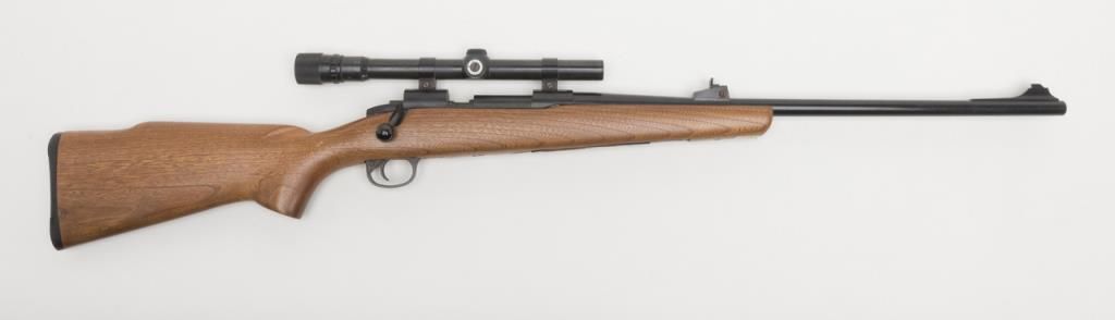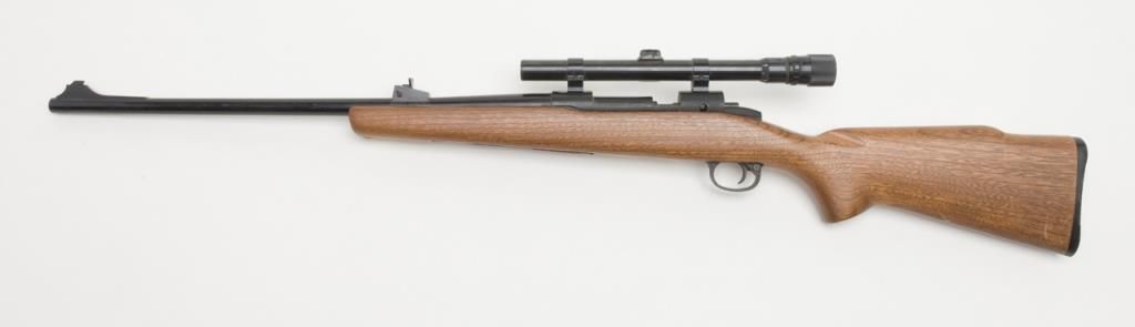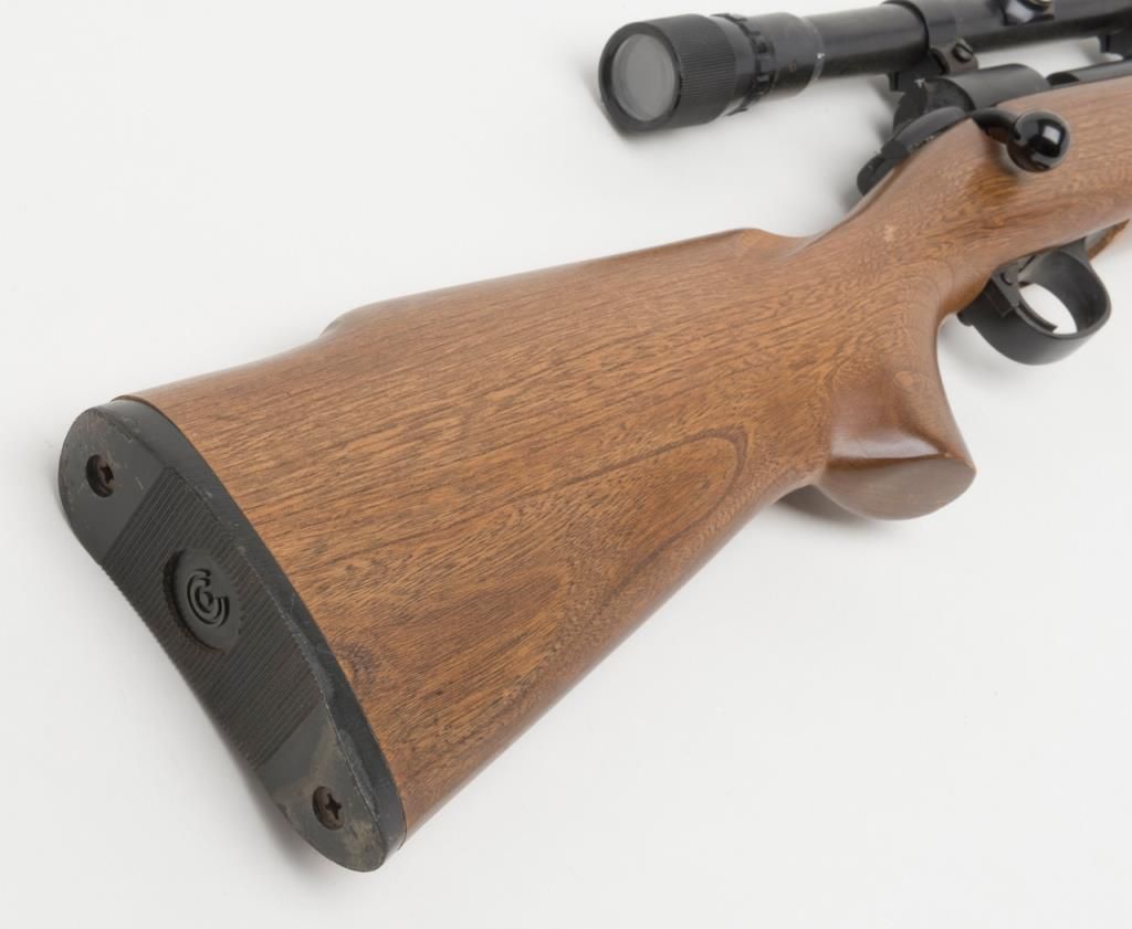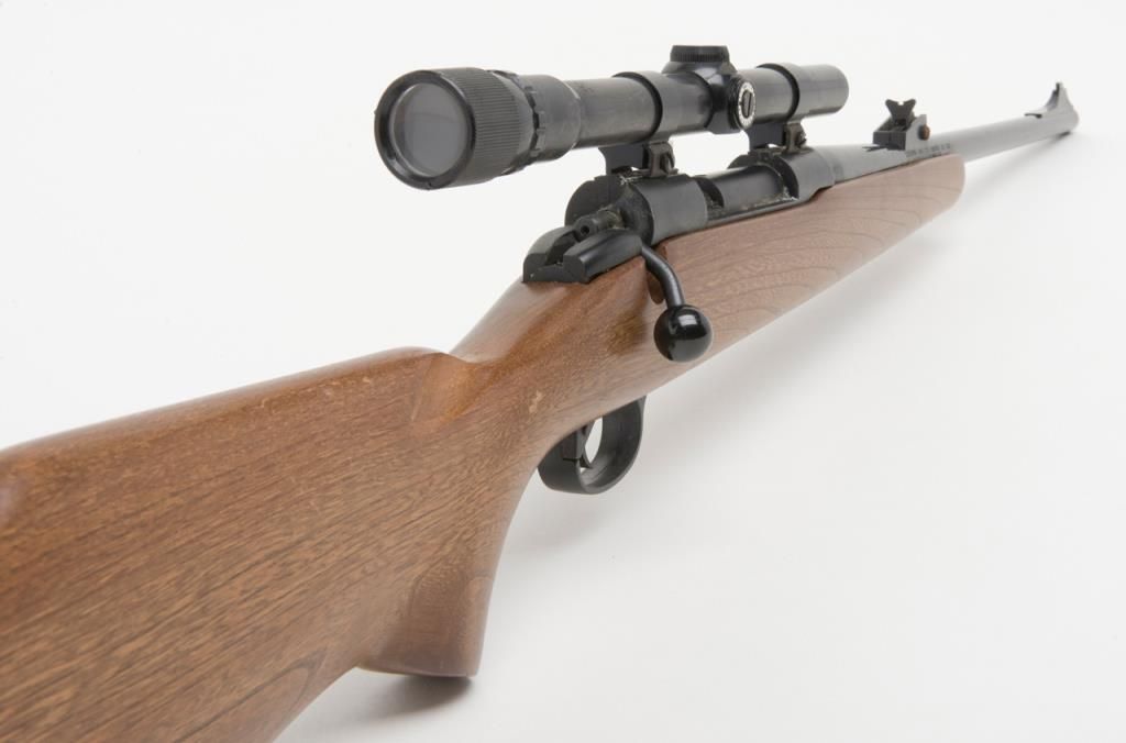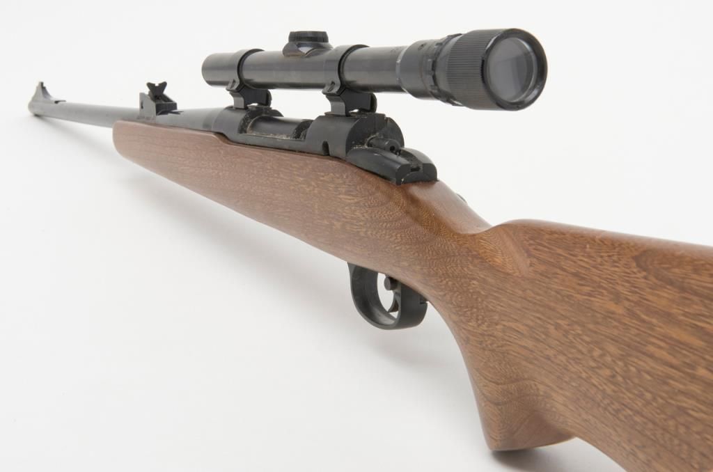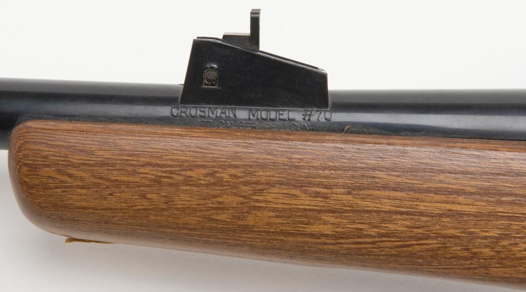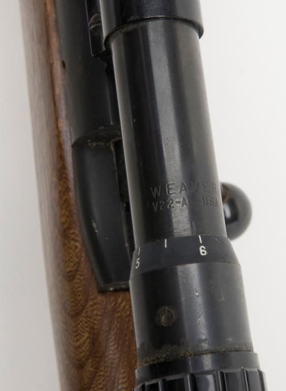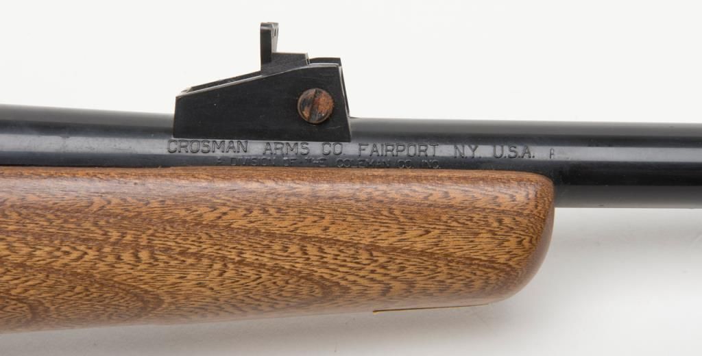 Crossman Model 70 bolt action pellet gun, overall good condition with some scattered surface rust from storage; good wood; mounted with Weaver scope with good optics; appears to be operational at time of description. (Exempt/airgun). Est.:$20-$40.