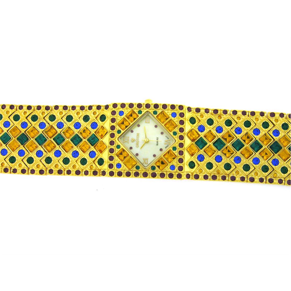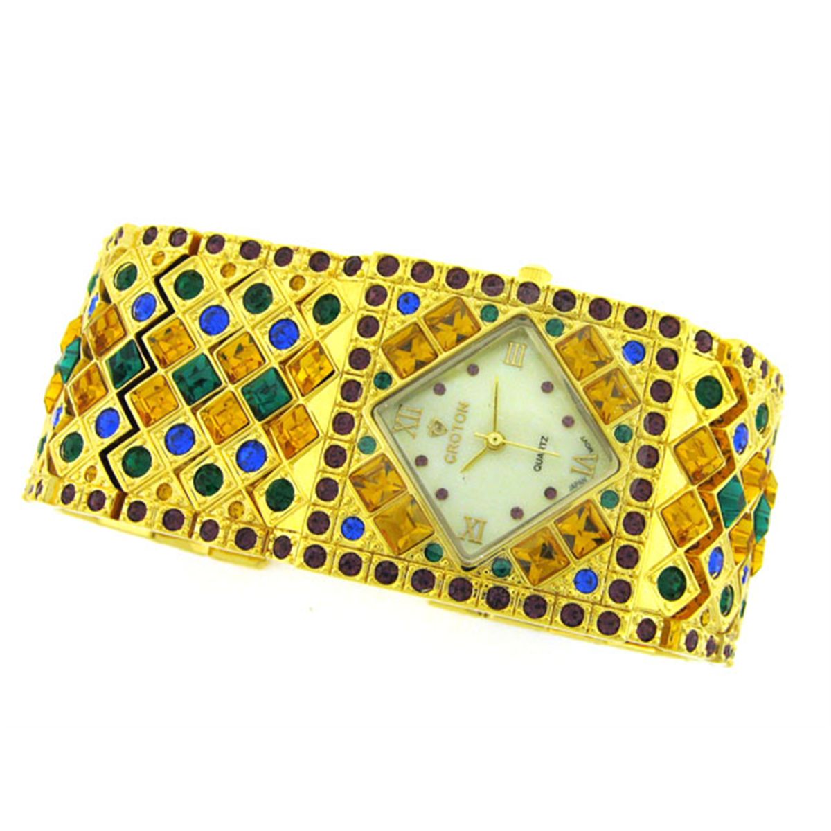 This is a Croton Ballroom CN207308YLMP Watch with the following features: Brass case material; 32 mm case size; mineral crystal; quartz Japan movement; and Stainless Steel.
