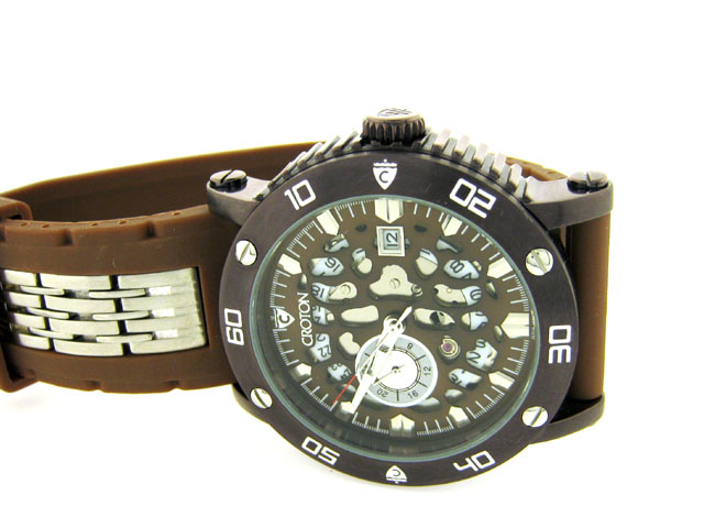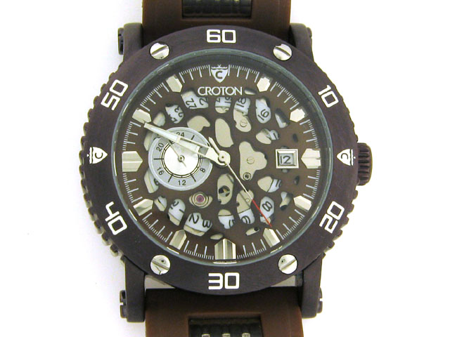 This is Croton Men's Automatic Stainless Steel Rubber Strap Watch in a strap, stylish, and sport-infused design The watch has a round stainless steel case. It also features a case-coordinating, unidirectional rotating bezel with seconds scale. A convenie