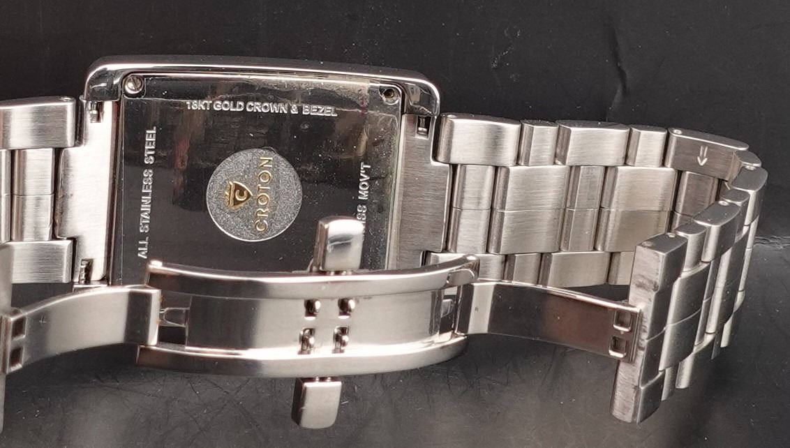 This has a 18k Bezel and Crown. Stainless Steel and Water Resistant& nbsp;