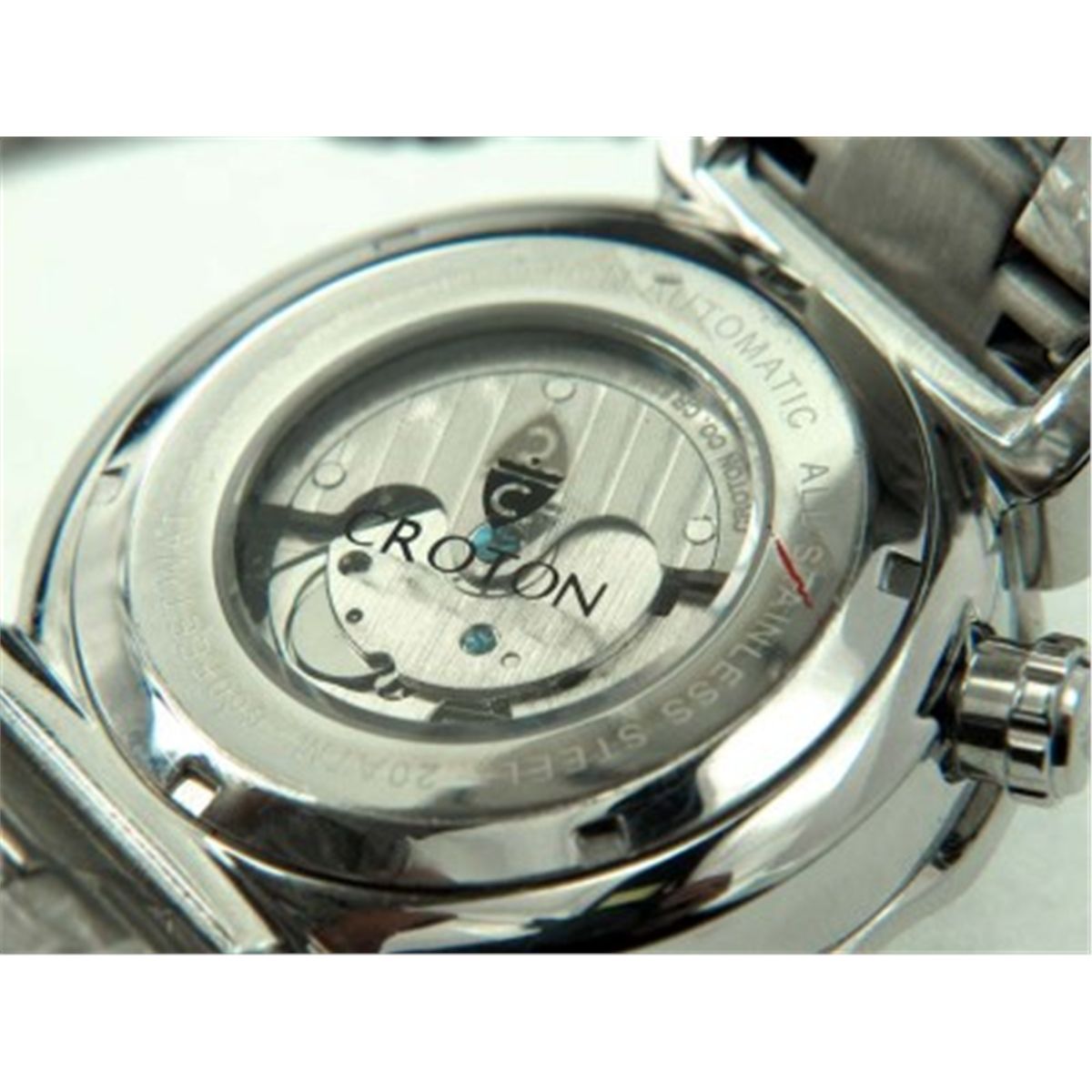 Croton Stainless Steel Automatic Skeleton Watch.The total watch's weight is 244.2 grams.The measurements of the watch head is 29 x 29 mm in diameter and 13 mm in thick.chain is 21 mm wide.The length of watch: 9.25".Water Resistant.Japan Mov't