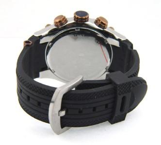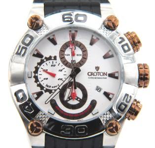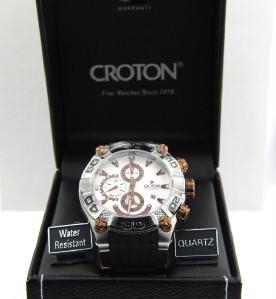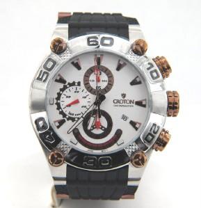 Brand New Croton Stainless Steel, Chronograph Rubber Strap Watch with Box.The total watch's weight is 126.5 grams.The measurements of the watch head is 44 x 45 mm in diameter and 11 mm in thick.Strap is 20 mm wide.The length of watch: 9.5".Water Resistant.Japan Movement