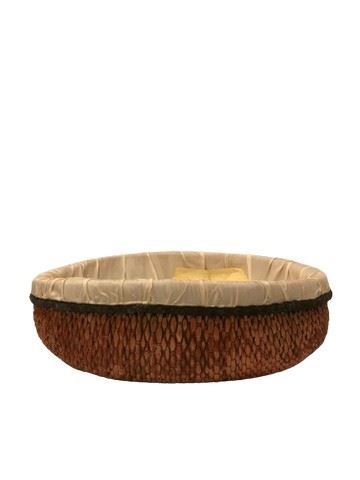 Two cloth lined, wicker baskets with joss paper tossed inside. (16"x16"x4", 14"x16"x5")