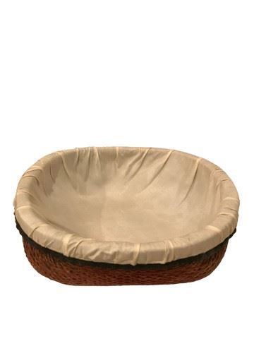 Two cloth lined, wicker baskets with joss paper tossed inside. (16"x16"x4", 14"x16"x5")