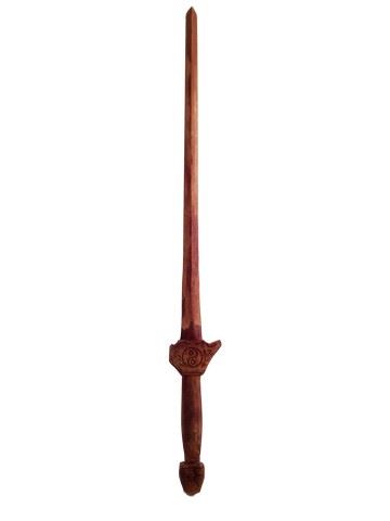 Screen used, children's practice sword, made from wood and hand carved handle with design on top and bottom of the handle, children used these for practice. (4x29)