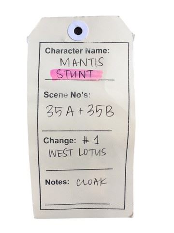 Mantis (Veronica Ngo) screen worn, stunt custom made, black, hooded robe. Includes wardrobe tag.