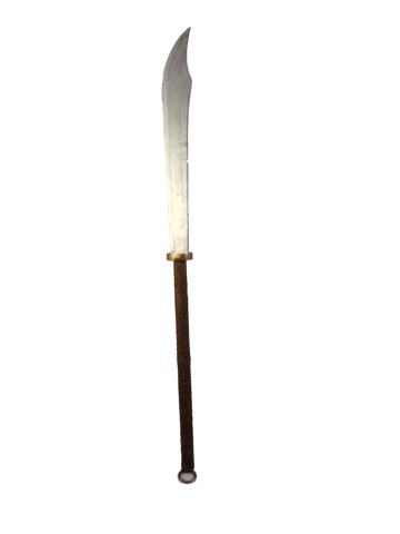 Screen used, stunt, Pu Dao, used for training. The sword has a long handle wrapped in cord and the blade is made of silver painted resin. Blade marks may vary slightly from actual photo.(55"x4")