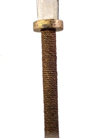 Screen used, stunt, Pu Dao, used for training. The sword has a long handle wrapped in cord and the blade is made of silver painted resin. Blade marks may vary slightly from actual photo.(55"x4")