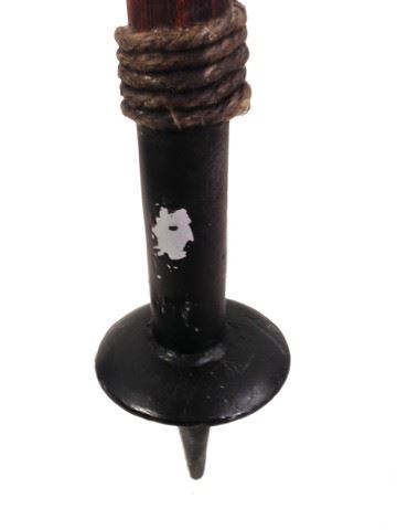 Silent Wolf (Donnie Yen) screen used, hero, long brown wooden club. The top is metal with resin and foam teeth. Brown cord wrapped around the top. Bottom of the club has one singular spike made from metal and foam. Condition of the spikes may vary slightly from actual photo.(76"x6")