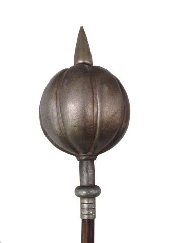 Screen used, stunt club, brown wooden handle with a large bulbous end made of foam and silver in color. This is called a "scepter" by production. On top is a round end spear tip.(75x10)