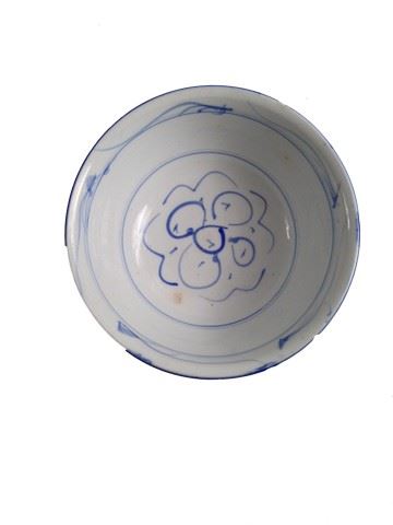 Screen used, Great Hall drinking crockery. One ceramic and glazed hand painted white and blue bowl .(5x2).