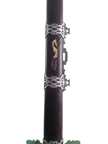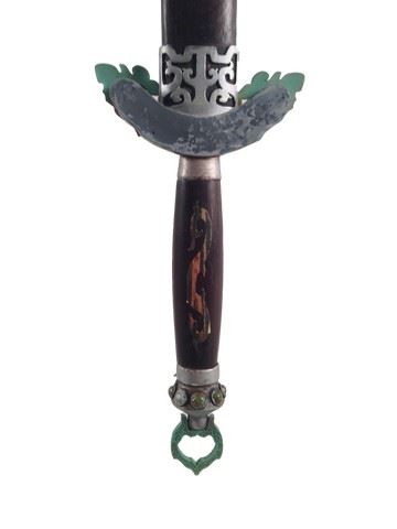Screen used, stunt, "Green Destiny", all in one sword and scabbard. Scabbard does not come apart from the sword. Color is brown and green with a gold sea hoarse design. Part of the handle has been removed for production use.(42x5)