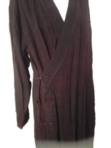 Iron Crow (Roger Yuan) screen worn, hero, cotton purple colored over robe that ties on inside of the robe. Robe is marked with "Iron Crow" on the label. Includes wardrobe tag.