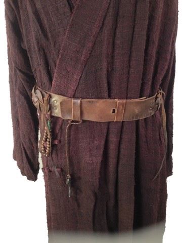 Iron Crow (Roger Yuan) screen worn, hero, purple colored over robe that ties on inside and buttons on the outside. Includes brown leather studded cuffs with leather laces. All pieces marked with "Iron Crow". Includes wardrobe tag.
