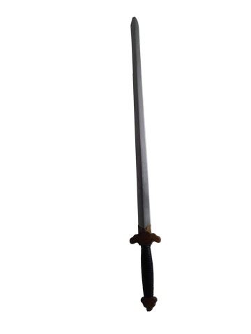 Screen used, stunt Jian - silver aluminum blade with a gold and leather handle, top and bottom of handle has an intercut design.(38x4)