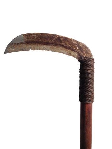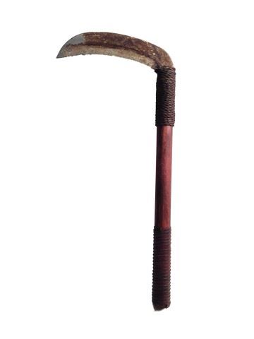 Screen used, rubber machete with wood handle and leather grip (16"x7")