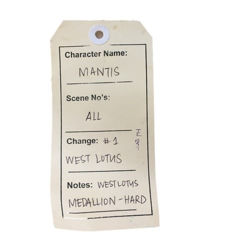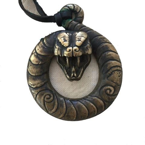 Mantis (Veronica Ngo) screen worn, hero, West Lotus medallion. Metal medallion with a circular snake design with open mouth and exposed fangs. Includes a black leather string used to tie around the neck. (2"x3")