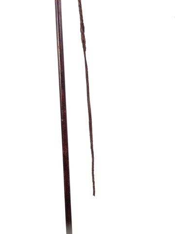 Screen used, wood and leather whip, handle is leather and the whip is woven leather that has one single piece of the leather at the end of whip.(54x1)